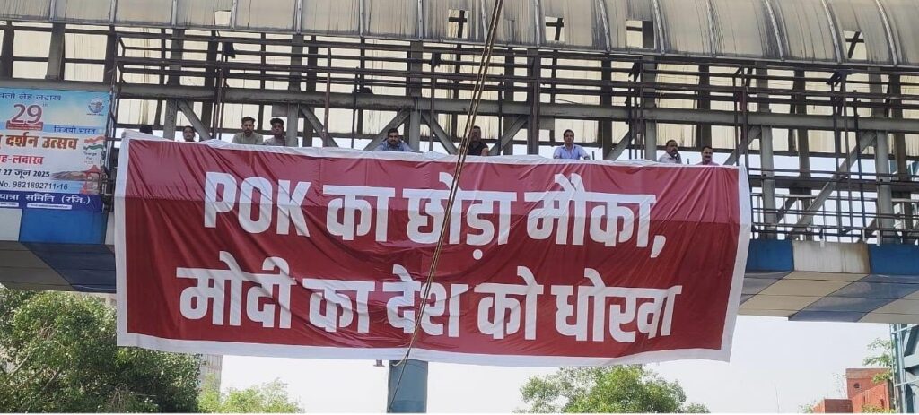 ‘‘आप’’ का भाजपा पर ह्यूमन बैनर हमला, पीओके का छोड़ा मौका-पीएम मोदी का देश को धोखा