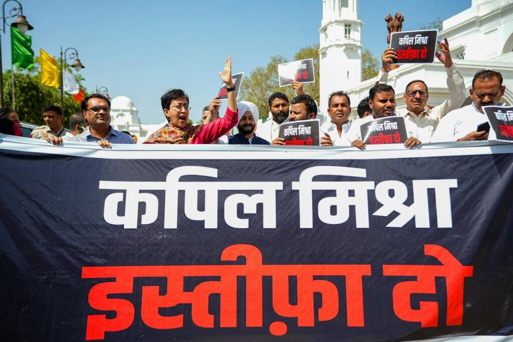 AAP MLAs demand Kapil Mishra’s resignation in Assembly; Speaker, in panic, orders their eviction by marshals
