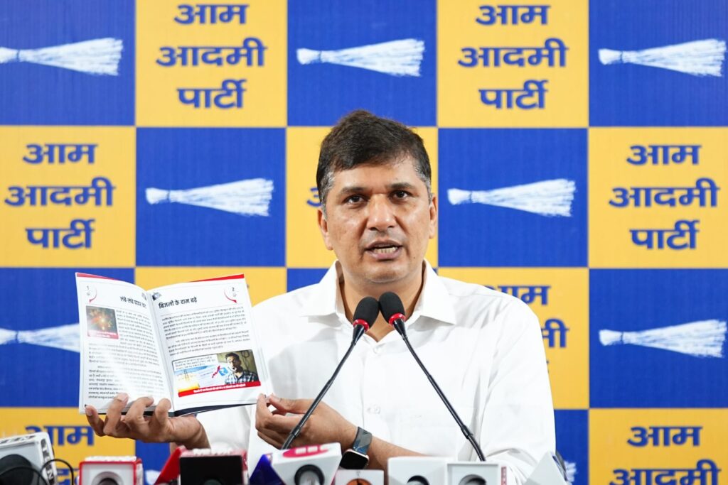 पार्टी मुख्यालय में हुई एक प्रेस वार्ता के दौरान आम आदमी पार्टी के दिल्ली प्रदेश संयोजक सौरभ भारद्वाज ने दिल्ली की भाजपा शासित सरकार के पिछले 100 दिन के कार्यकाल का रिपोर्ट कार्ड प्रस्तुत किया। सौरभ भारद्वाज ने कहा, कि हमने सुना है भाजपा शासित दिल्ली सरकार खुद अपने 100 दिन के कार्यकाल का रिपोर्ट कार्ड बनाकर दिल्ली की जनता के सामने प्रस्तुत करने वाली है। उन्होंने कहा कि बचपन में हम सुना करते थे, कि शरारती बच्चे जब इम्तिहान में फेल हो जाते थे, तो वह अपना फर्जी रिपोर्ट कार्ड खुद ही बनकर परिवार के लोगों के सामने रख देते थे। उन्होंने कहा कि आज दिल्ली में भी ऐसे ही कुछ शरारती बच्चों की सरकार स्थापित है, जो अपने 100 दिन के इम्तिहान का फर्जी रिपोर्ट कार्ड खुद ही बनकर जनता के सामने प्रस्तुत कर जनता को बेवकूफ बनाने की कोशिश कर रहे हैं। उन्होंने कहा कि ऐसा कैसे संभव है, कि जिस बच्चे ने इम्तिहान दिया है वही बच्चा अपना रिपोर्ट कार्ड खुद बनाएगा। सौरभ भारद्वाज ने कहा, कि भाजपा अपने 100 दिन के विफलताओं को इस झूठे रिपोर्ट कार्ड के माध्यम से छुपाने की कोशिश कर रही है और दिल्ली की जनता को बहकने की कोशिश कर रही है, यही कारण है कि हमने भाजपा के पिछले 100 दिन के कार्यकाल की विफलताओं का यह असली रिपोर्ट कार्ड तैयार किया है और हम इसे दिल्ली और देश की जनता के सामने प्रस्तुत कर रहे हैं, ताकि जनता को सच्चाई का पता चल सके।