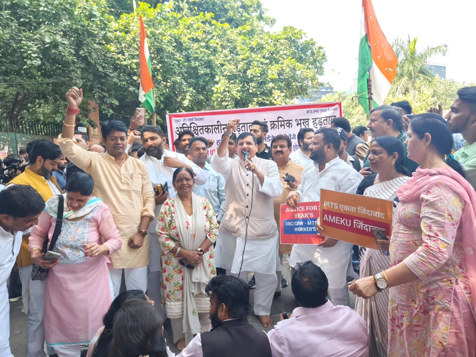 Addressing the employees, AAP MCD co-incharge Praveen Kumar said, “For 12 days now, over 5,000 MTS employees have been enduring the blazing heat on the streets. Just 5 meters away, BJP Mayor Raja Iqbal Singh sits comfortably in an air-conditioned room. The BJP’s four-engine government has time to roam across Delhi spreading propaganda, but not one leader, minister, or MLA has come to meet the striking employees. On Wednesday, the employees marched to meet Chief Minister Rekha Gupta, but she refused to meet them. Are these people outsiders? Rekha Gupta herself has been a councillor and a mayoral candidate. During COVID, these same workers disinfected the city when no one dared to step out of their homes. Today, dengue and malaria workers are fighting for their survival and equal pay, but the BJP remains indifferent. The AAP stands firmly with them. We ensured they got MTS status, and through struggle, we will ensure they get equal pay for equal work too.”