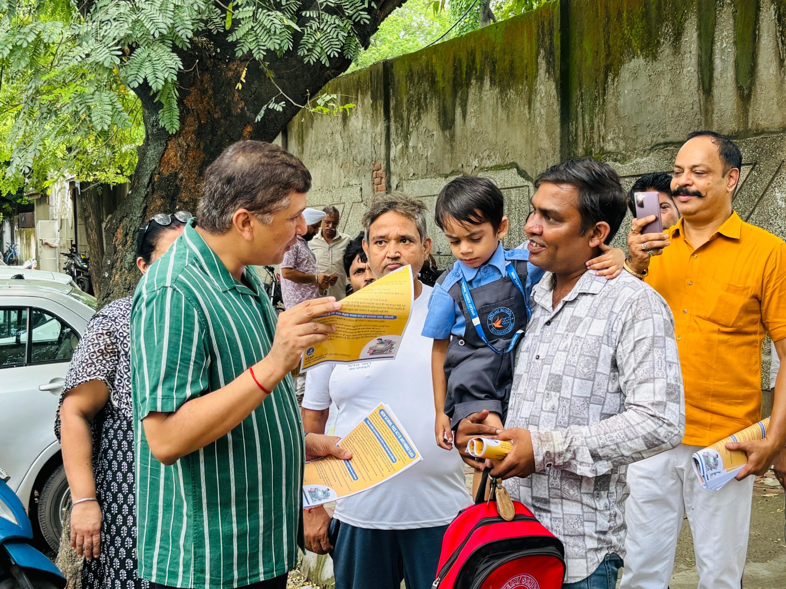 While distributing pamphlets outside a private school in Sheikh Sarai, AAP Delhi State President Saurabh Bharadwaj said, “The BJP government in Delhi has brought a law regarding private school fees. This law has been made completely in favour of private school owners. It is against the middle class and against parents. In protest, the Aam Aadmi Party has launched a campaign from Tuesday. As part of this campaign, a pamphlet has been prepared, printed in English on one side and in Hindi on the other. AAP is distributing this pamphlet to parents outside private schools in all Delhi Assembly constituencies.”
